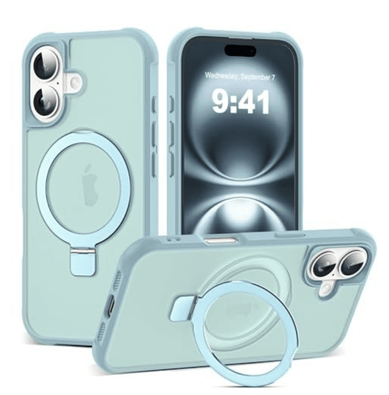 If you're looking for a phone case that not only protects your iPhone 15 but also adds a cool touch, this "iPhone 15 Case with Magnetic Stand" in beautiful blue is a fantastic pick. It's sturdy enough to shield your phone from drops and scratches, yet sleek enough to fit comfortably in your hand or pocket. The vibrant blue color is sure to stand out and give your device a modern look.